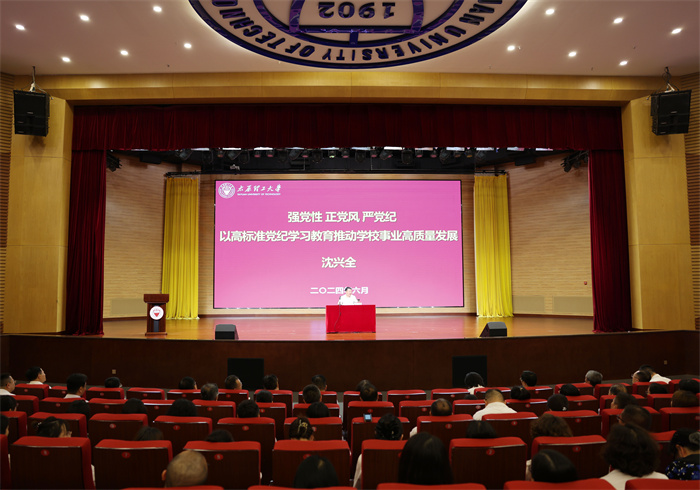 为深入学习贯彻习近平总书记关于党纪学习教育的重要讲话和重要指示精神,落实校党委关于党纪学习教育的相关要求,6月27日下午,校党委书记沈兴全在明向校区学生活动中心为机关全体干部及所联系党支部全体党员讲授专题党课。